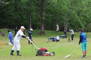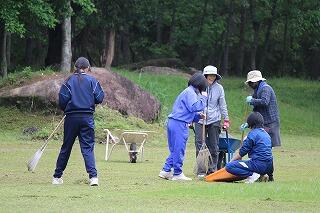 22日の体育祭に向けてグラウンドの草刈り等を行いました。保護者・地域の方々・児童生徒・教職員の協力で短時間できれいになりました。