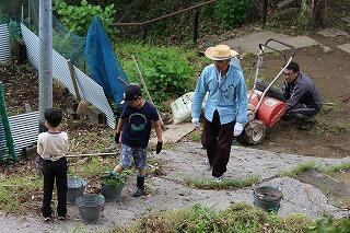 奉仕作業と並行して畑の整備も行いました。畑では、イモやカボチャなどを栽培します。