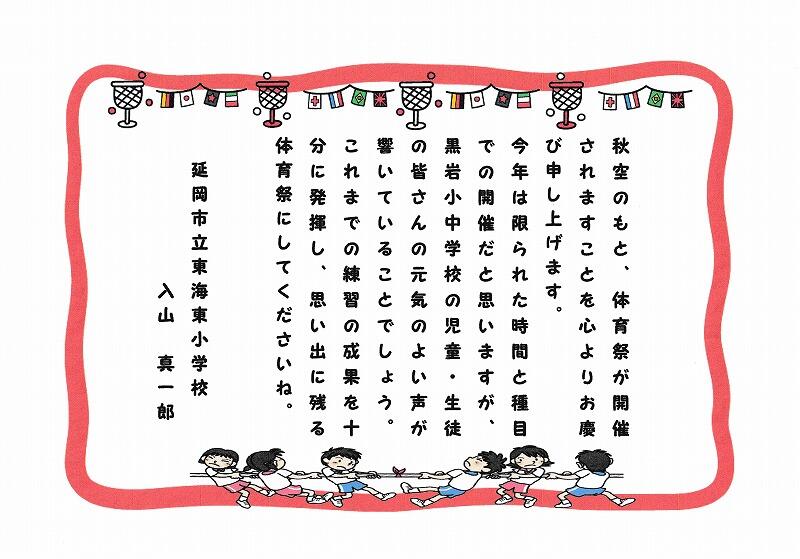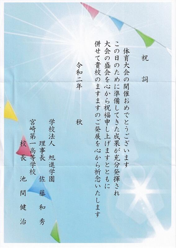 さて、体育祭にあたりまして、祝詞をいただいております。そこで、この場で紹介をさせていただきます。なお、順不同となっております。