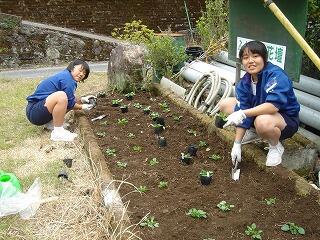 小学部、中学部、それぞれで「ふれあい花壇」活動を行いました。