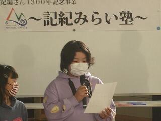 子どもたちは、神話にまつわる場所が身近にあることに気づき、神話に関心をもつことができたようでした。また、アナウンス体験では、柳田さんのアドバイスで、とても聞きやすい上手なアナウンスができました。
