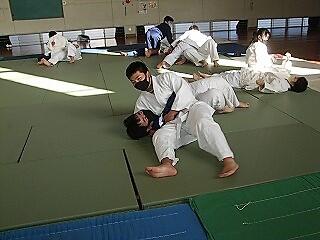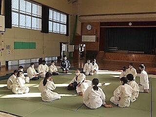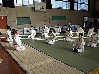 生徒は、基本的な技や受け身などを、実演を交えて分かりやすく学んでいます。また、始まりと終わりは武道らしく「正座」「礼」であいさつをします。