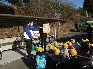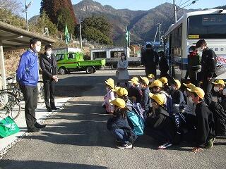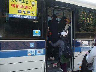 宮崎交通のバスが学校まで来てくれて、宮崎交通の方がバスのことや乗り方などを教えてくださいました。子どもたちは、バスに乗る機会は少ないものの、バスのことをよく知っていました。子どもたちには、今回学んだことを生かして、公共交通機関としてのバスを利用してほしいと思います。