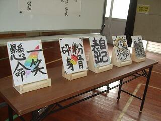 低学年は鉛筆で、3年生以上は毛筆で行いました。3年生以上は、自分で考えたり、選んだりした四字熟語などを書きました。子どもたちそれぞれに、味のある字を書いていて、一人一人の思いがこもった作品ができていました。