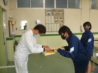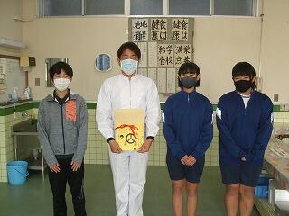 いつもおいしい給食でお世話になっている方々へ感謝(お礼)のメッセージを書いた文章を渡しました。本校は、旭小学校で作られてくる給食をいただいています。今年はコロナ禍の影響もあり、給食感謝の集会が開けませんでした。しかし、校内放送や各学級で給食感謝への指導が行われました。そのときに、作成したメッセージを、給食を運んでくださっているドライバーさんに代表して渡しました。