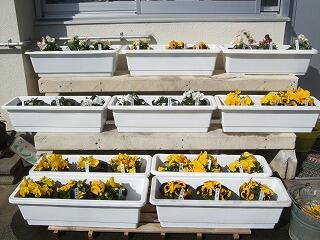 このプランターで、3月の卒業式や4月の入学式の会場を飾る予定です。これから子どもたちが責任もってお世話していきます。春がくるのが楽しみです。