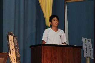 ▼ふれあい学習の最後には地域にお礼の言葉を述べました。