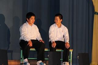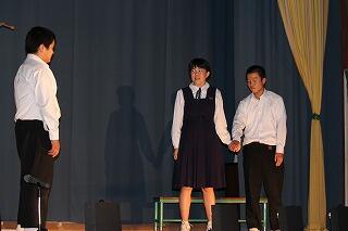 ▼劇「実験(矢島正雄さく)」(中学部全員)