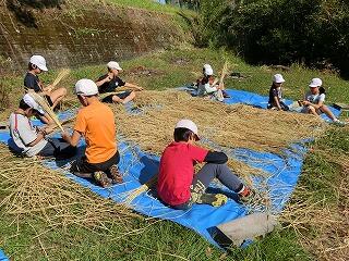 次の土曜授業(7日(土))には、放課後子ども教室の先生の指導でしめなわづくりを行います。今日は、そのための準備です。