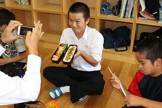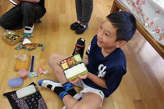 くろいわ祭当日は、お弁当の日でした。小学部・中学部いっしょになってお弁当を見せ合いました。その後は、同じ教室で食べました。