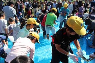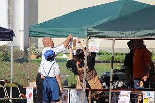前日までの大雨がうそのように晴れ上がって、晴天の中、盛大にPTAバザーが開催されました。多くの地域の方々にも楽しんでいただくことができたのではないでしょうか。前日準備から当日の販売、会計、片付けまでPTAの活躍ぶりは下の写真で紹介します。子どもたちも、歳末助け合い募金活動や食品の販売などでがんばていました。