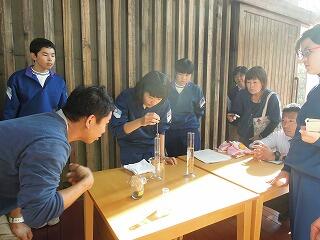 微生物の学習・蒸留の学習など実際に体験しながら学習しました。当日は、黒岩小中学校以外に南浦中学校・島野浦中学校の生徒も一緒に学習しました。