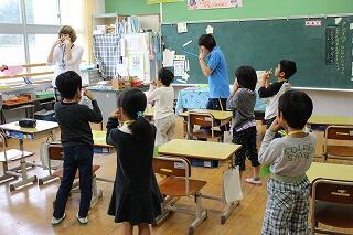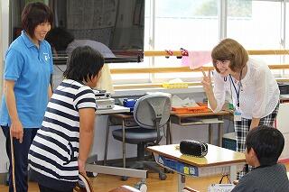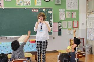 今日は、1・2年生の外国語活動の授業です。学級担任の先生とALTの先生が2人で授業しました。ゲームをしながら外国語に慣れ親しんでいきます。とっても楽しい時間でした。