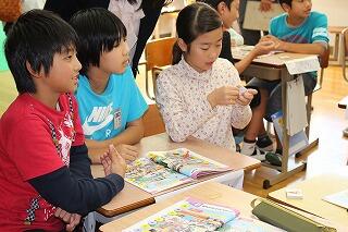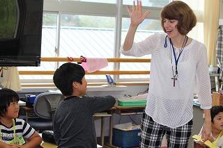 本校は、小学部1年から4年までも特別の時間割をくんで外国語活動の授業をしています。(他の小学校は5、6年だけ)