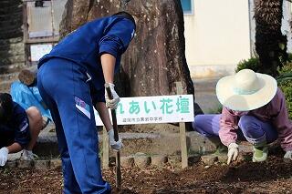 本校区は、6地区があります。各地区の公民館に本校のふれあい花壇があり、地域の方々と協力して花の栽培を行っています。
