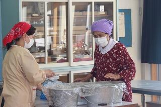 昔話を読もうということで子どもたちが読んだ話の中に「だんごどっこいしょ」という話がありました。そこで小学部1・2年生は、実際に講師を招いて団子作りを行いました。(講師は小学部教頭先生です)