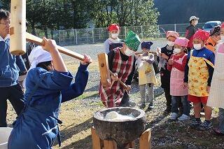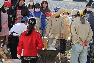 持久走大会の後は、もちつきです。中学部3年の受験を無事乗り越えてほしいというエールの気持ちも込めてもちをつきました。もちつきの最後に中学部3年生より、受験に向けての決意表明があり、「己に勝つ」という発表の後、全員でエールを送りました。