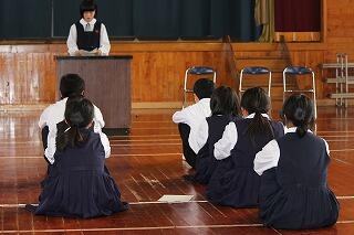 新生徒会役員を決める生徒会立会演説会が行われました。「朝のボランティア活動の活性化」「地域との交流を積極的に」「朝の登校時間に余裕をもって」「行事外での小学部との交流を多くしたい」など、今後の黒岩小中学校をよくするための考えをしっかり発表してました。