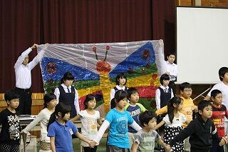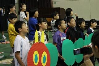 ▼音楽表現「はらぺこあおむし」小中学部全員