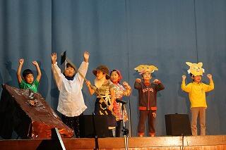 ▼音読発表「五十音」「天下古墳のカラス伝説」(小学部全員)