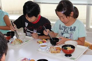 枝豆ご飯、ちくわの磯辺揚げ、タコのすり身揚げ、ひやうどん、味噌汁でした。