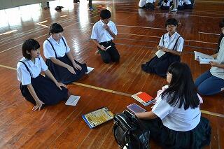 今日は登校日でした。中学部では、毎年恒例の「先輩の声を聞く会」が行われました。