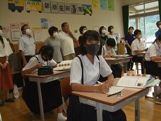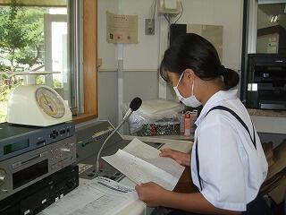 今回は、新型コロナウイルス感染拡大防止のために、校内放送で実施することとなりました。代表児童生徒の作文発表、校長先生のお話、保健室の先生のお話などを、放送で行いました。教室では、みんな真剣に放送を聞いていました。