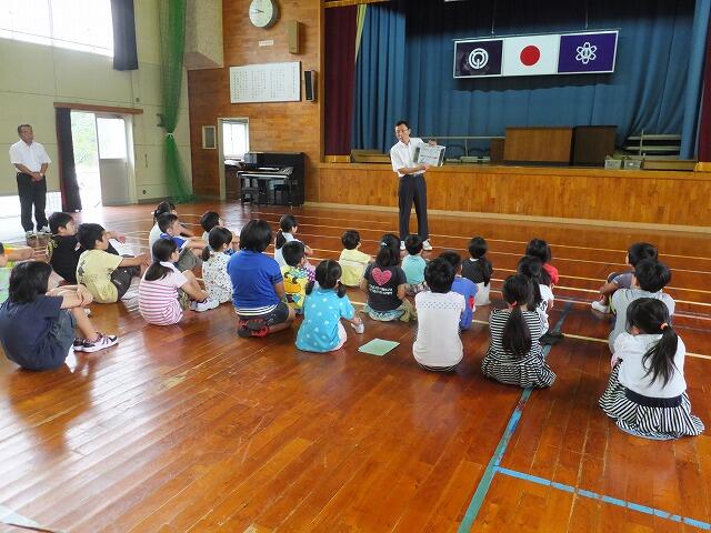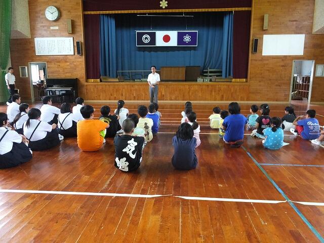 まずは、小学部・中学部に分かれて集会を行い、夏休みの過ごし方の話をしました。