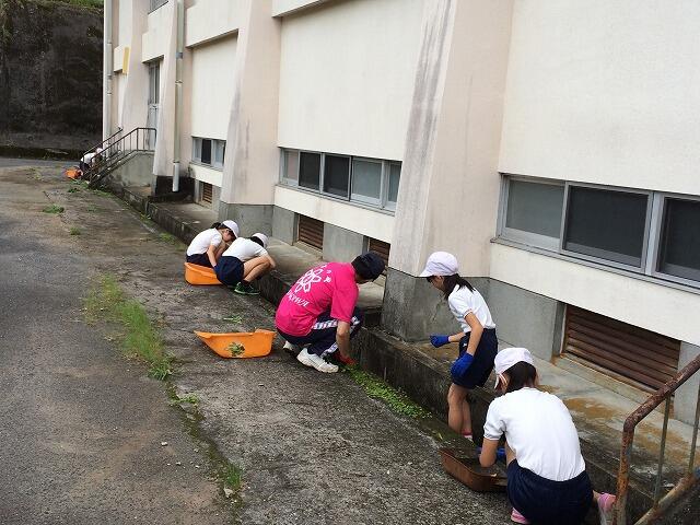 小学生は、体育館周りや理科室前の側溝をきれいにしました。