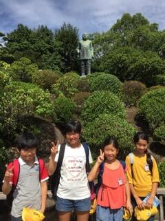 西郷さん像の前でパチリ。とてもよい天気になりました。