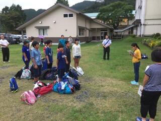 現在、予定より約20分ほど遅れています。休憩の時に、およその帰校予定時刻お知らせしていきます。