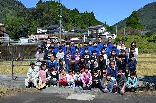 体育館で新入生歓迎集会をした後、大野町の河原と広場に行って全校児童で遊びました。天気にも恵まれ楽しい時間を過ごしました。