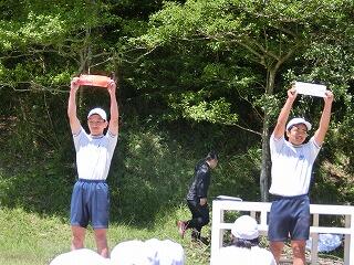 ただ、今一番心配なのは、「熱中症」と「光化学オキシデント」です。参加される方は「熱中症」への対策を十分にしてきてください。「光化学オキシデント」については、注意報が発令された場合、体育祭を一時中断あるいは中止することもあります。また、注意報が出ることを想定して、プログラムの進行を早めることも考えていますので、ご理解とご協力をお願いします。保護者の皆様は、本日配付したプリントをよくお読みください。よろしくお願いします。