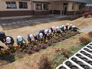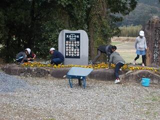 卒業式に向けて全校のみんなで花壇の手入れをしました。
