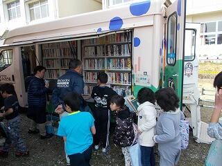 延岡市立図書館の「ふくろう号」が昼休みにやってきました。子ども達は本が大好きです。