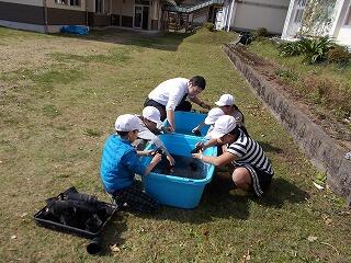 1,2年生でいもほりをしました。予想よりも大きないもが出てきて、子ども達は大喜びでした。