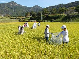 5,6年生で田の草取りをしました。もうすぐ、稲刈りです。