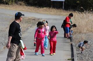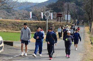 15キロコースに続いて、8キロ、4キロコースが出発です。消防団の方々が交通整理をしてくださいました。