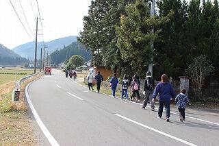 黒岩地区体育協会主催で、黒岩地区歩こう会が開催されました。地域の人たちと長時間歩くことにより、強い心身を鍛えると共に、交流と親睦を深めることが目的です。距離は、15キロ、8キロ、4キロコースで、自分の体力に応じて選びます。受付担当として、中学生も頑張りました。参加者は、110名です。いよいよ出発です。