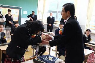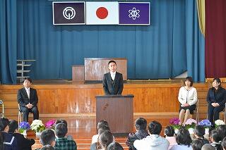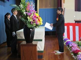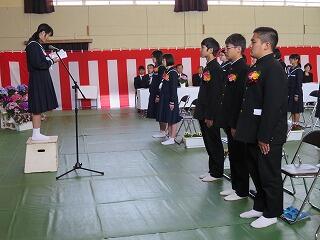 小学生・保護者・来賓・職員で、中学部の卒業をお祝いしました。