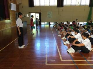 児童生徒3名が、2学期の抱負を発表しました。始業式終了後には英語弁論大会に向けての練習がありました。