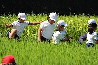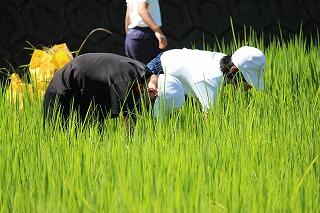 今日は、小学部で田んぼの草取りに出かけました。低学年は、背丈もの苗に苦労しながらも一生懸命草取りをしていました。