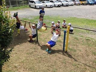 小学部1、2年生の体育の授業は逆上がりの練習でした。みんな頑張って練習しました。