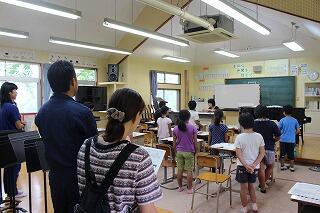9月の学校参観日です。保護者の方を前に子どもたちも緊張しています。