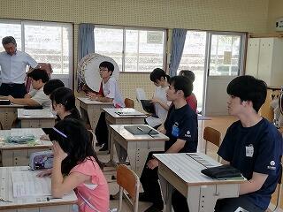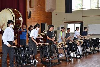 9月10日(火)10:35~12:00、黒岩小中体育館で橘太鼓響座による鑑賞教室が行われました。本来は保護者・地域の方にも声を掛けて迫力のある演奏を観て聞いてほしかったのですが、種々の約束事(契約)があり、今回は児童生徒、職員のみの鑑賞となりました。実際に太鼓に触れて演奏させてもらったり、東日本大震災で被害を受けた宮城県に支援として太鼓を贈ったエピソードを聞いたり、同じ1日ならだらだら過ごすより一生懸命生きることの大事さを教えていただきました。なお、この模様は13日(金)18:30~waiwaiTVで放映されます。2時間おきにされると思います。