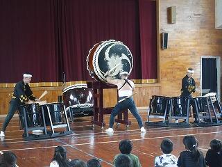 | 軽快なリズムで3人が登場 | 大きな太鼓を力いっぱい叩く。振動がすごい | 希望者が演奏。職員も3人参加 |