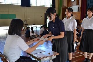 9月12日(木)は中学部対象の生徒会立会演説会および投票が行われました。事前に1年生から2名、2年生から3名がそれぞれ副会長・会長候補として立候補してくれました。5人とも立派な公約を述べてくれましたので、全員で熟考して投票している様子がとても清々しかったです。緊張してドキドキしたけど演説してくれた5人も本当にお疲れ様でした。きっとよりよい黒岩小中になっていくことでしょう。