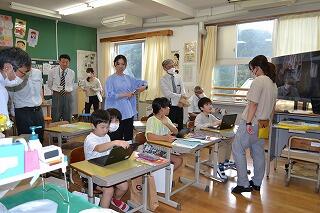 | 2年生の算数の授業 | 1年生の算数の授業 | 音楽の授業(後ろの4人は大学生) | 5・6年生の音楽の授業 |