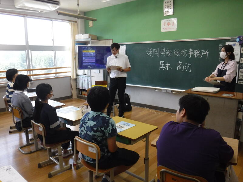 小学部6年生は、税の仕組みについて延岡県税総務事務所の方2名に来ていただき、話を聞きました。様々な税のおかげで道路や学校、警察署、消防署などが運営できていること、税がなくなれば逆に公共のものがなくなり、多くのものが有料化されたりと社会が助け合う仕組みがなくなってしまうということなどが分かりました。税社会の中で、みんなが助け合ってよりよい生活をしていくことがこれからも大切だと感じました。