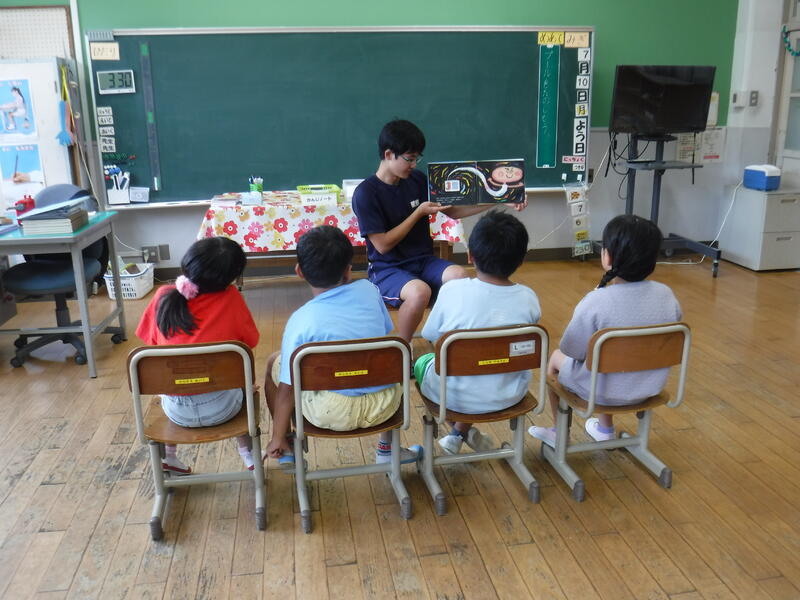 今日から3回にわたって、中学生から小学生に絵本や物語の読み聞かせをしてもらっています。